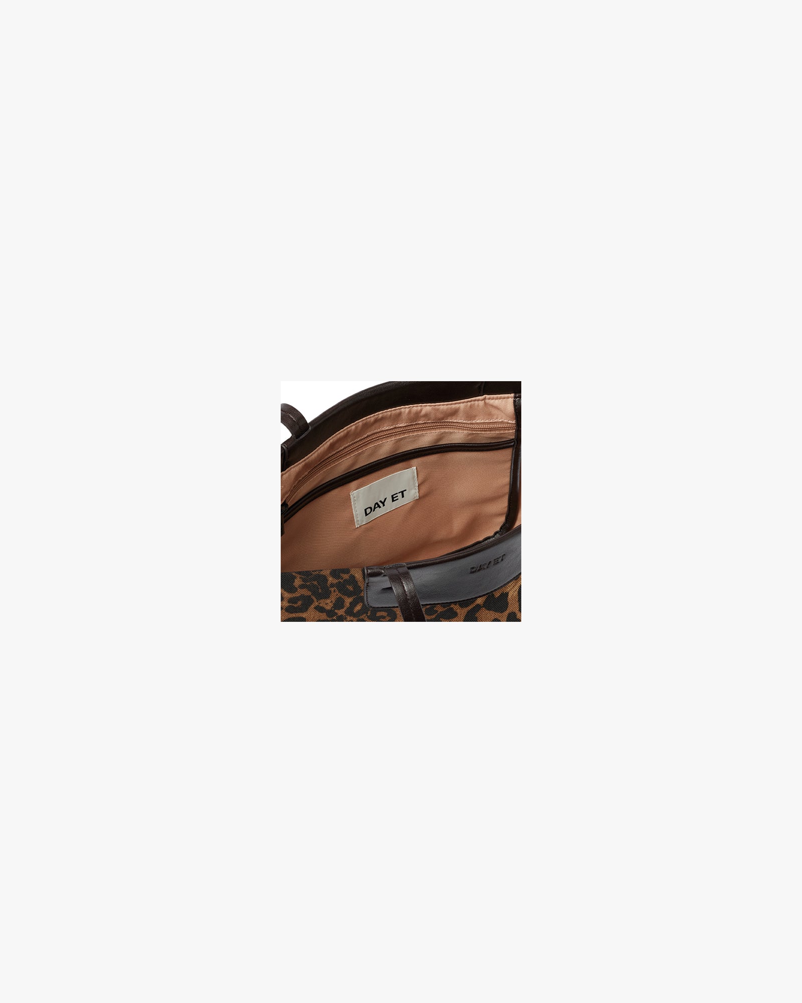 Cotton twill shoulder bag with leopard print in a classic, elegant design with multiple details and a firm faux leather base. The bag has internal pockets and a strap with a D-hook for keys – ideal for everyday use and work.