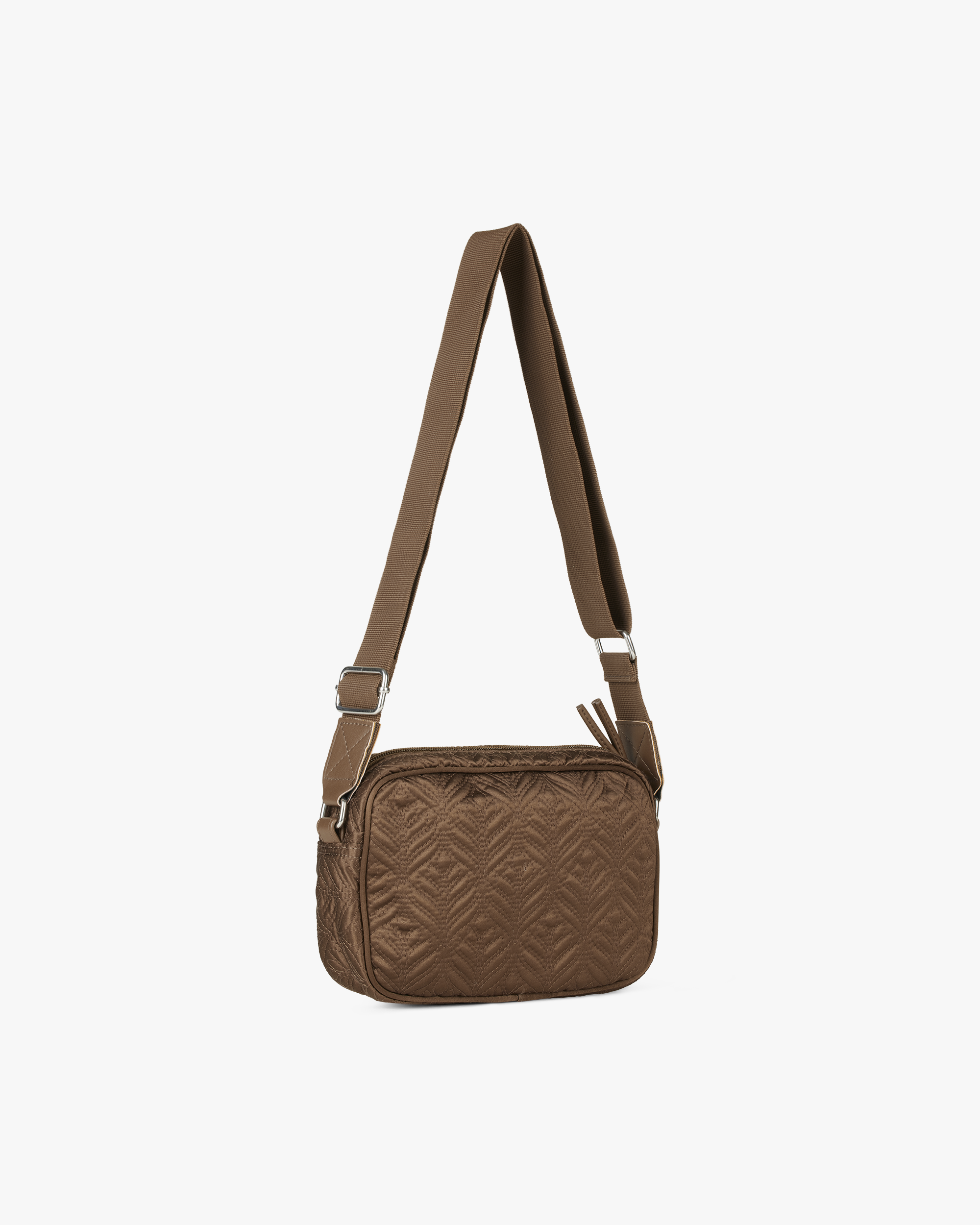 This crossbody is perfect for a day on the go. It is designed in a beautiful quilt, and it is closed with a zipper. The bag has two inside pockets and a outside pocket, so you can keep your bag organized. The strap is adjustable, so you can get the wanted fit.