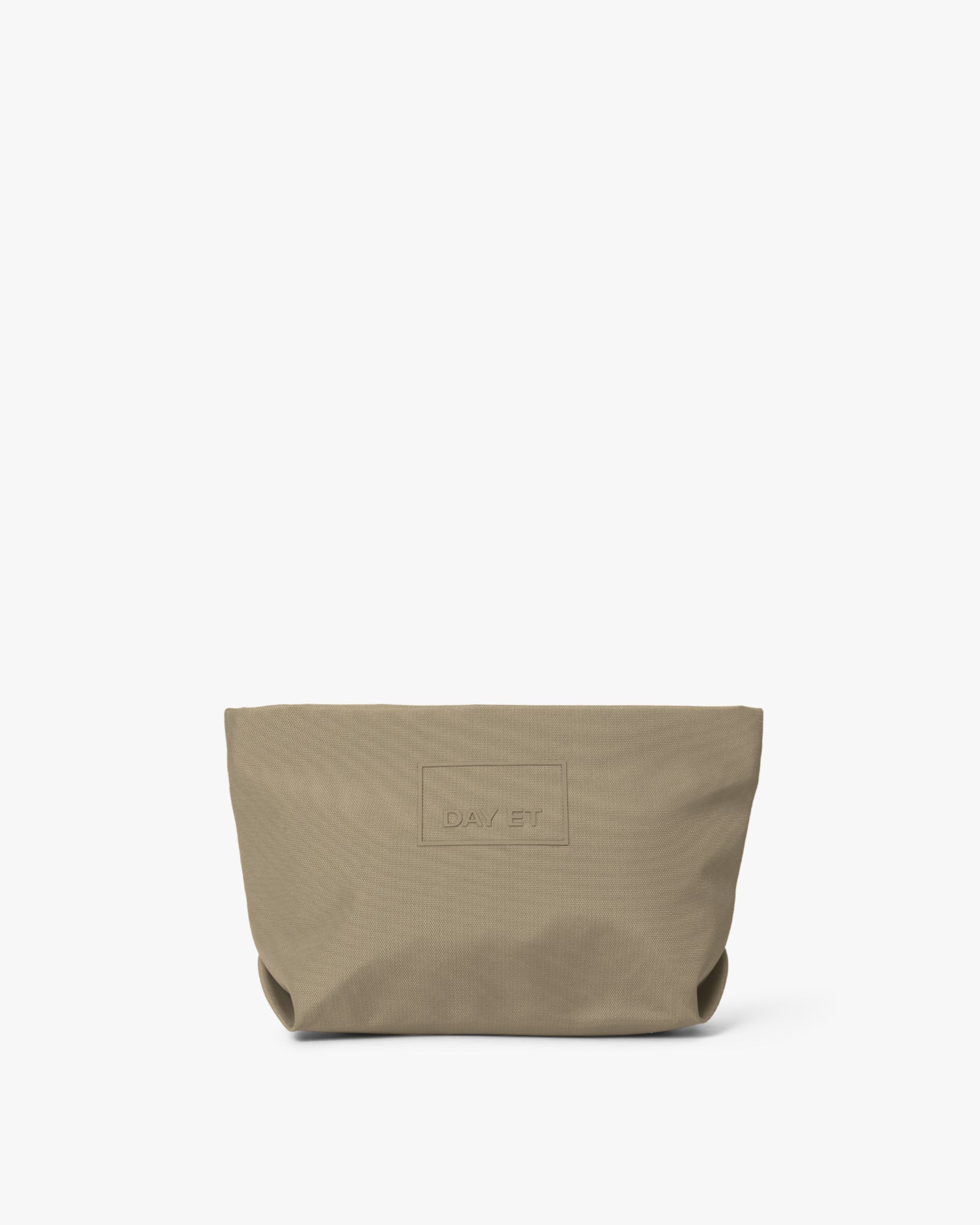 A small pouch with a clean and tonal design. It features a recessed zip closure and an open inner pocket for easy organisation. Ideal to use as a compact clutch or as an insert to keep your larger bag in order.