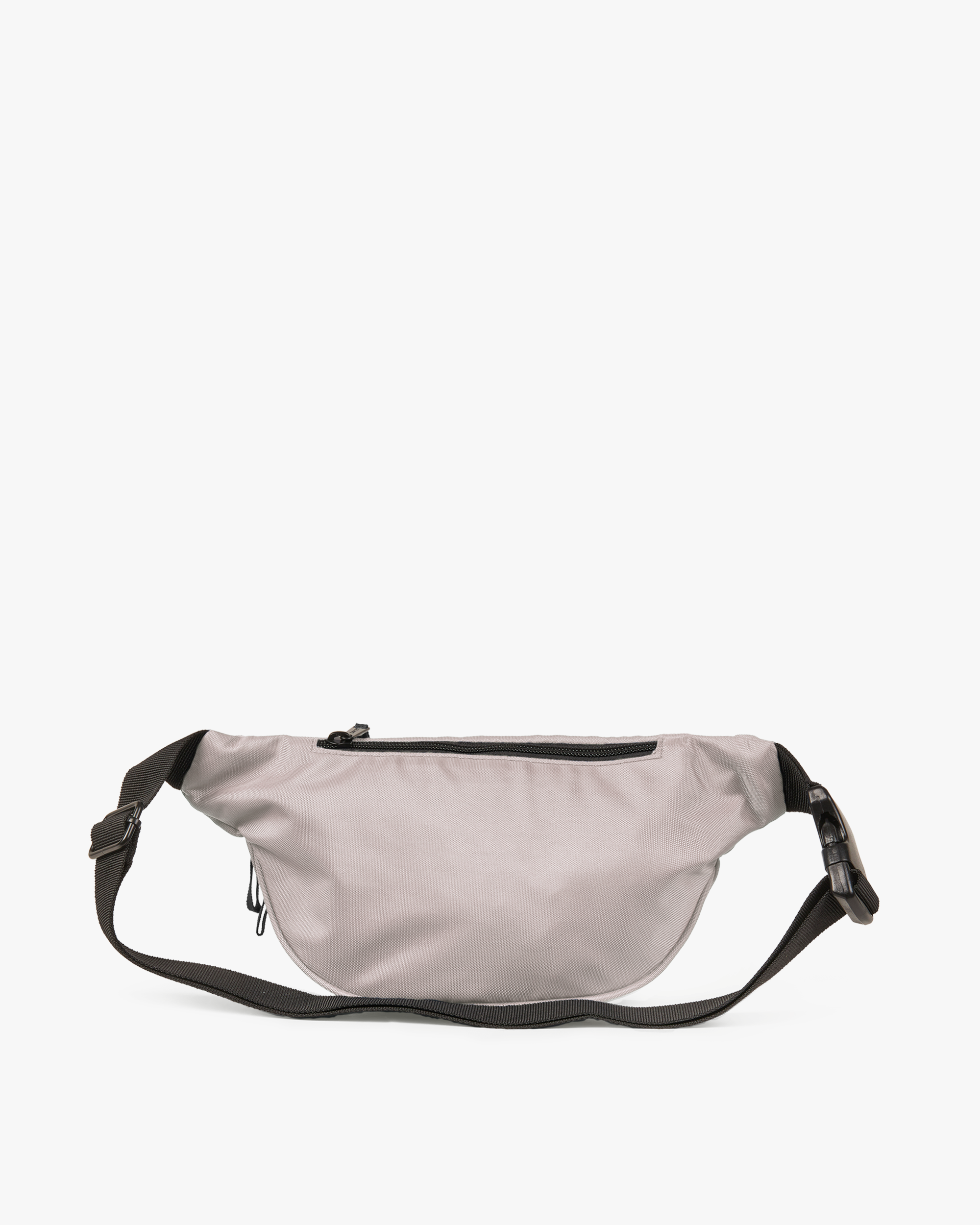 This functional bum bag features a classic design, and its outer fabric and inner lining are made of 100% certified recycled material. The bag closes with a zipper and has a capacity of 1.5 liters. Inside the main compartment, there is an inner pocket, and at the back of the bag, there is a zippered pocket for easy organisation. The adjustable strap with a buckle allows you to customise the fit, making it wearable both as a crossbody and around the waist.