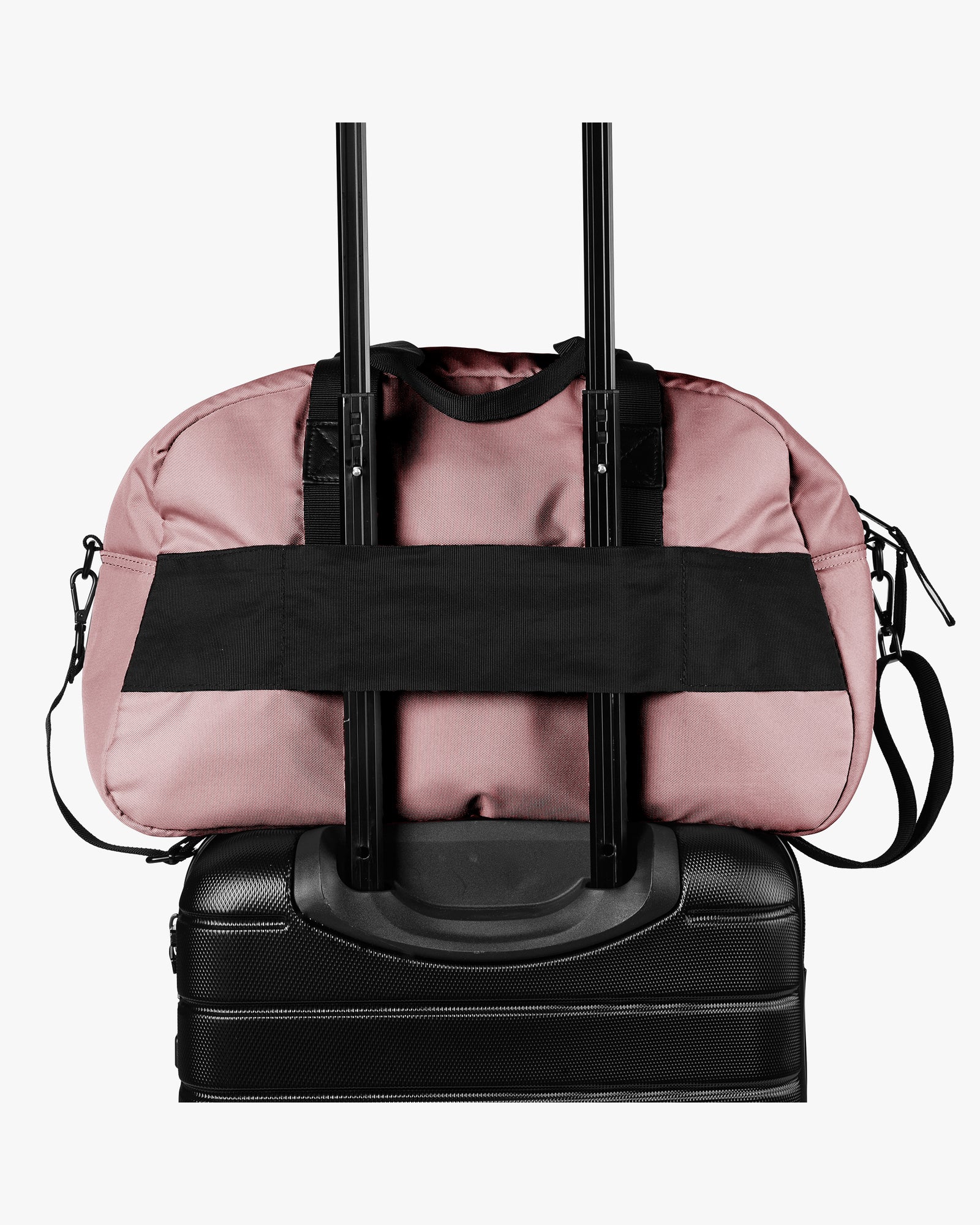 This functional bag is perfect for a getaway. Its outer fabric and inner lining are made from lightweight 100% certified recycled material. The main compartment accommodates a 13' laptop, and the bag has several pockets to organise your belongings. It features two shorter handles and a detachable, adjustable strap, allowing you to wear it over your shoulder or as a crossbody. Additionally, there is a strap at the back for attaching the bag to a suitcase.