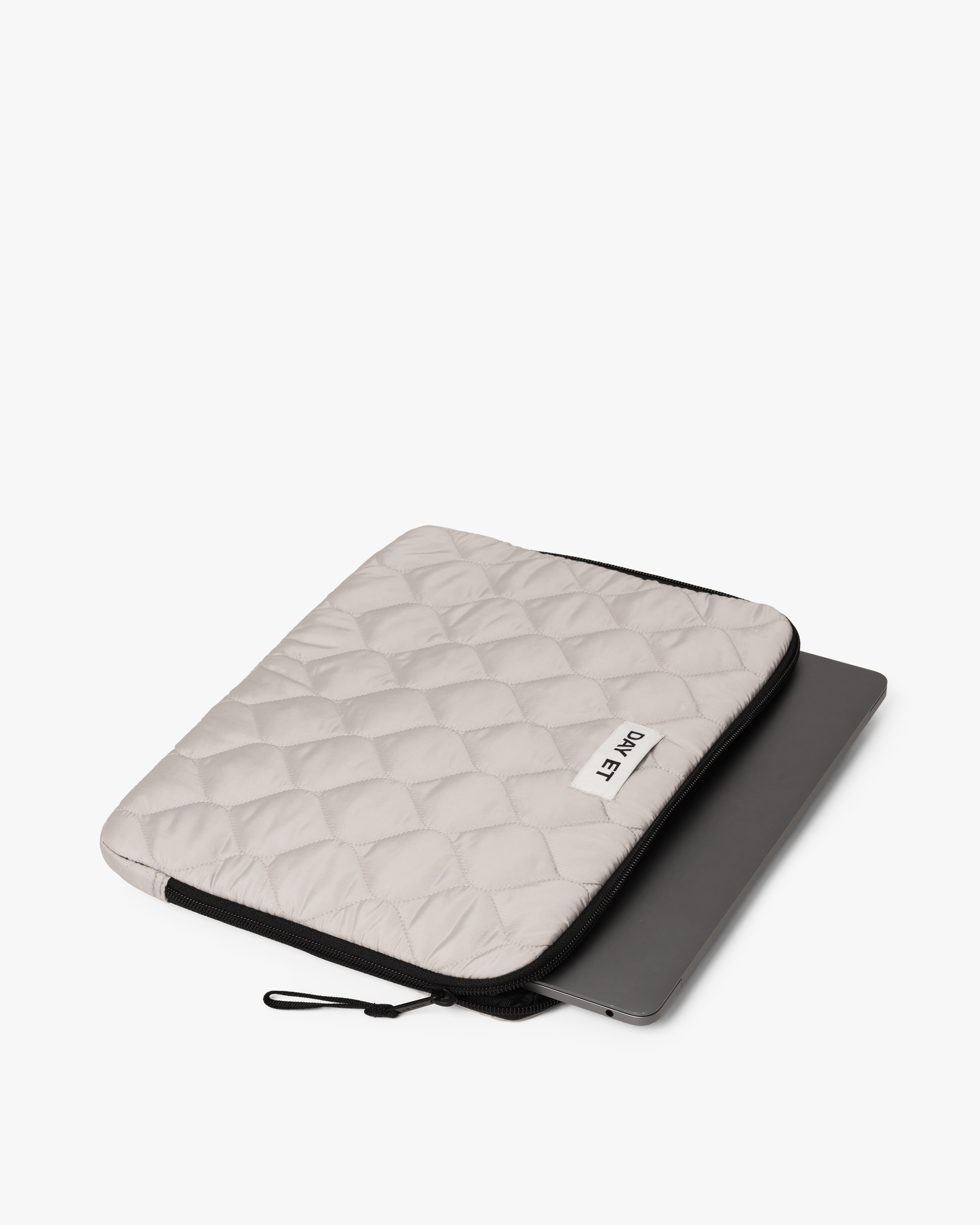 This padded laptop sleeve fits a 13" computer and features a quilted outer for a soft look and feel. Inside, there’s an open side pocket for documents or accessories. The zip opens wide, making it easy to slip your laptop in and out.