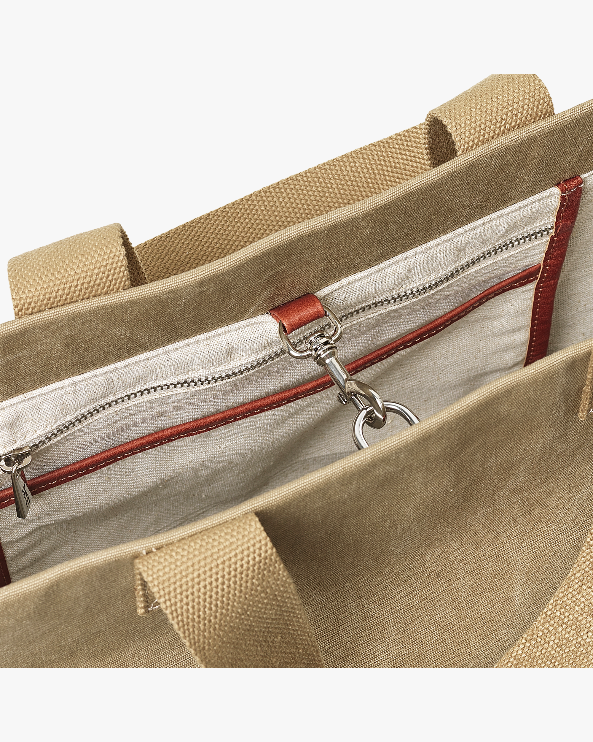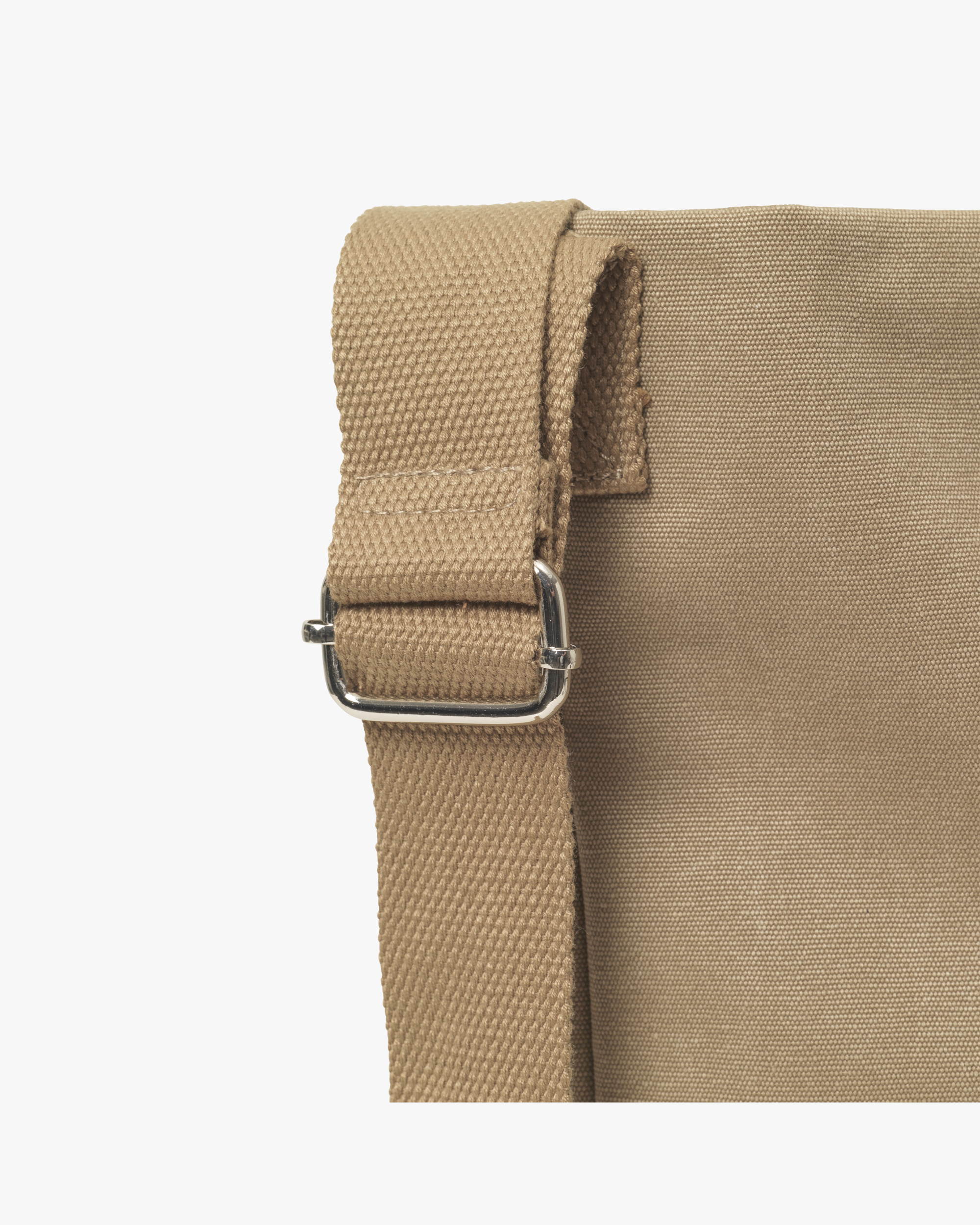 This functional crossbody bag is made from durable cotton canvas with a laid-back attitude. It features two short top handles and a long adjustable strap with a soft hanging detail for a relaxed silhouette. The main compartment secures with a hook, and the inside offers both a zip pocket and an open section for easy organisation. Finished with leather touches and a structured base, it's a go-to style for everyday versatility.