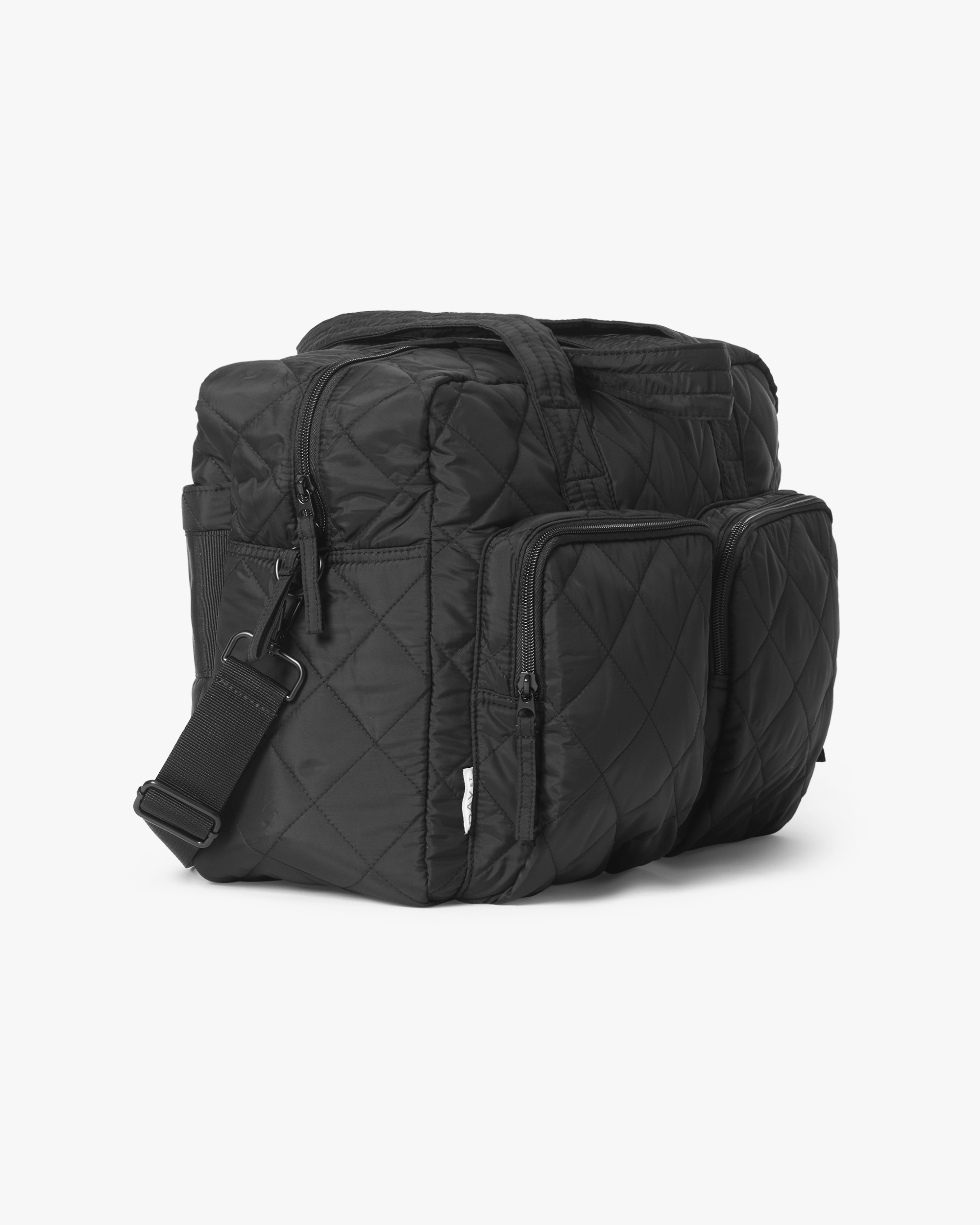 Denne praktiske taske har plads til alt hvad du har brug for af puslesager, og dens ydre stof og inderfor er lavet af 100% genanvendt materiale. Tasken lukkes med en lynlås, og den har flere indvendige og udvendige lommer. Den har to kortere håndtag, så du kan bære tasken over skulderen, og den har også en aftagelig og justerbar strop, så den kan bæres crossbody eller hænge over styret på en barnevogn. Bagpå har tasken en rem, så den kan sættes over håndtaget på en kuffert.