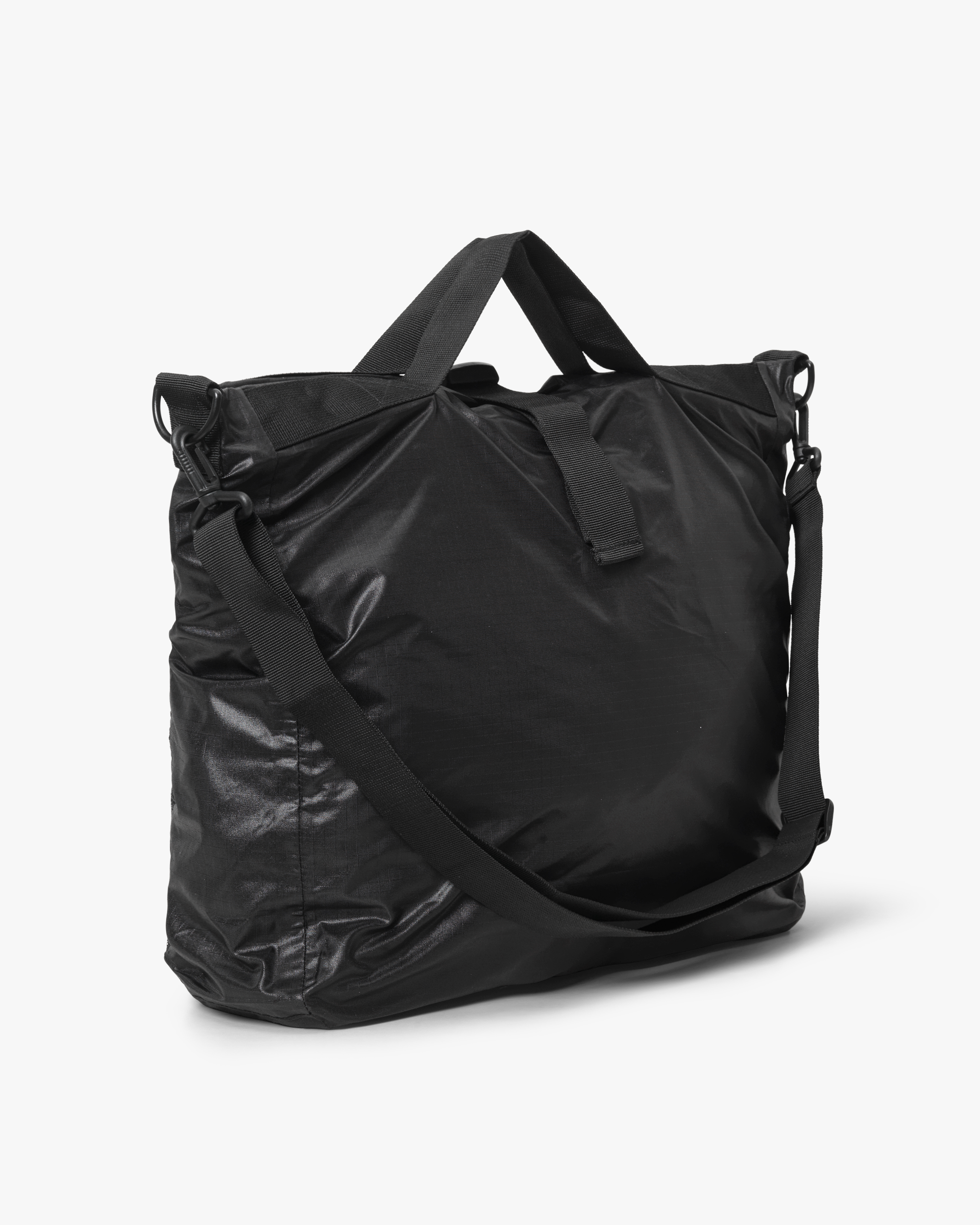 En funktionel tote i vandtæt ripstop-nylon, der kombinerer funktion og fleksibilitet. Yderstof og inderfor er lavet af 100% certificeret genanvendt materiale, og materialet kan modstå vandsøjletryk på op til 15.000 mm. Tasken lukkes med en sænket vandtæt lynlås og et spænde over åbningen, som giver ekstra sikkerhed. Indvendigt finder du en lynlåslomme, og udvendigt har tasken to store mesh-lommer og en funktionel D-krog til ekstraudstyr som karabinhage, AirTag eller andet. Den har både korte hanke og en aftagelig, justerbar rem, så du kan bære den, som du ønsker.