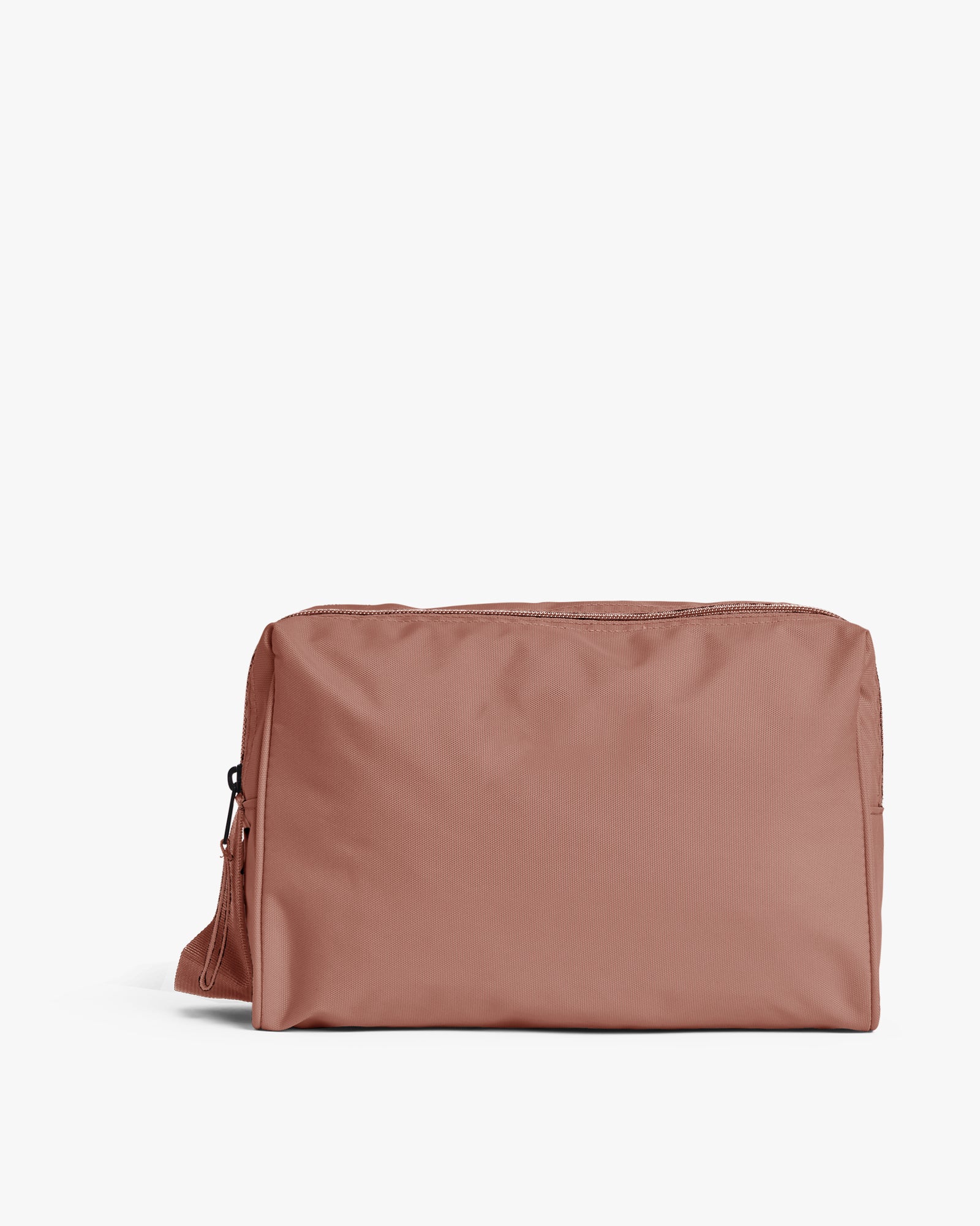 En rummelig toilettaske med et tonalt design, hvor farver og materialer er afstemt for et roligt, ensartet udtryk. Den har to separate rum med lynlåslukning og flere indvendige lommer, som gør det nemt at holde styr på dine toiletsager. Både yderstof og inderfor er fremstillet af 100% certificeret genanvendt materiale.