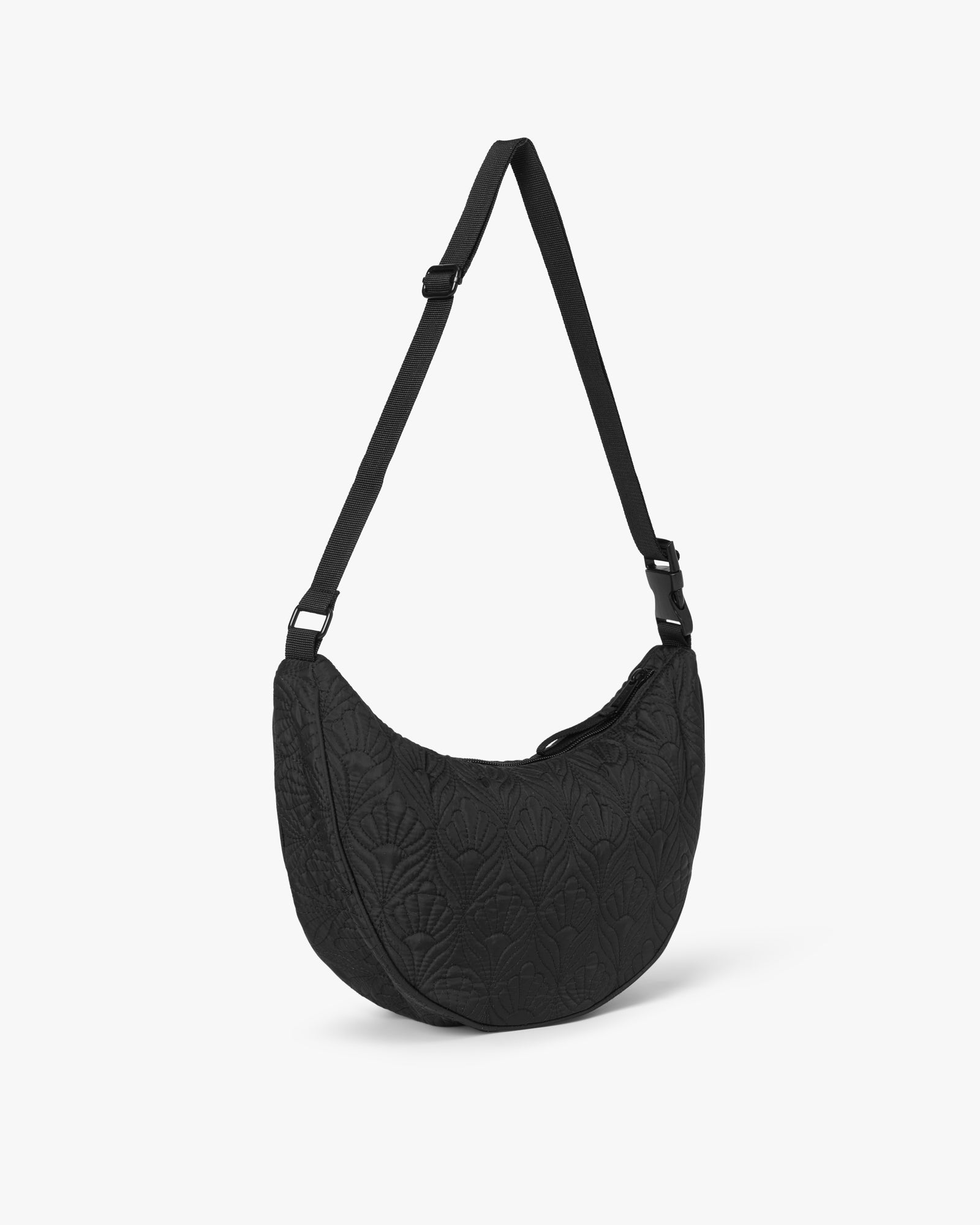 Denne funktionelle crossbody i et flot quiltet mønster er perfekt til en dag på farten, og dens ydre stof og inderfor er lavet af 100% certificeret genanvendt materiale. Tasken lukkes med en lynlås, og den har en indvendig lynlås lomme, hvor du kan opbevare dine mindre sager. Stroppen er justerbar, så den kan tilpasses, så du kan få den ønskede pasform.