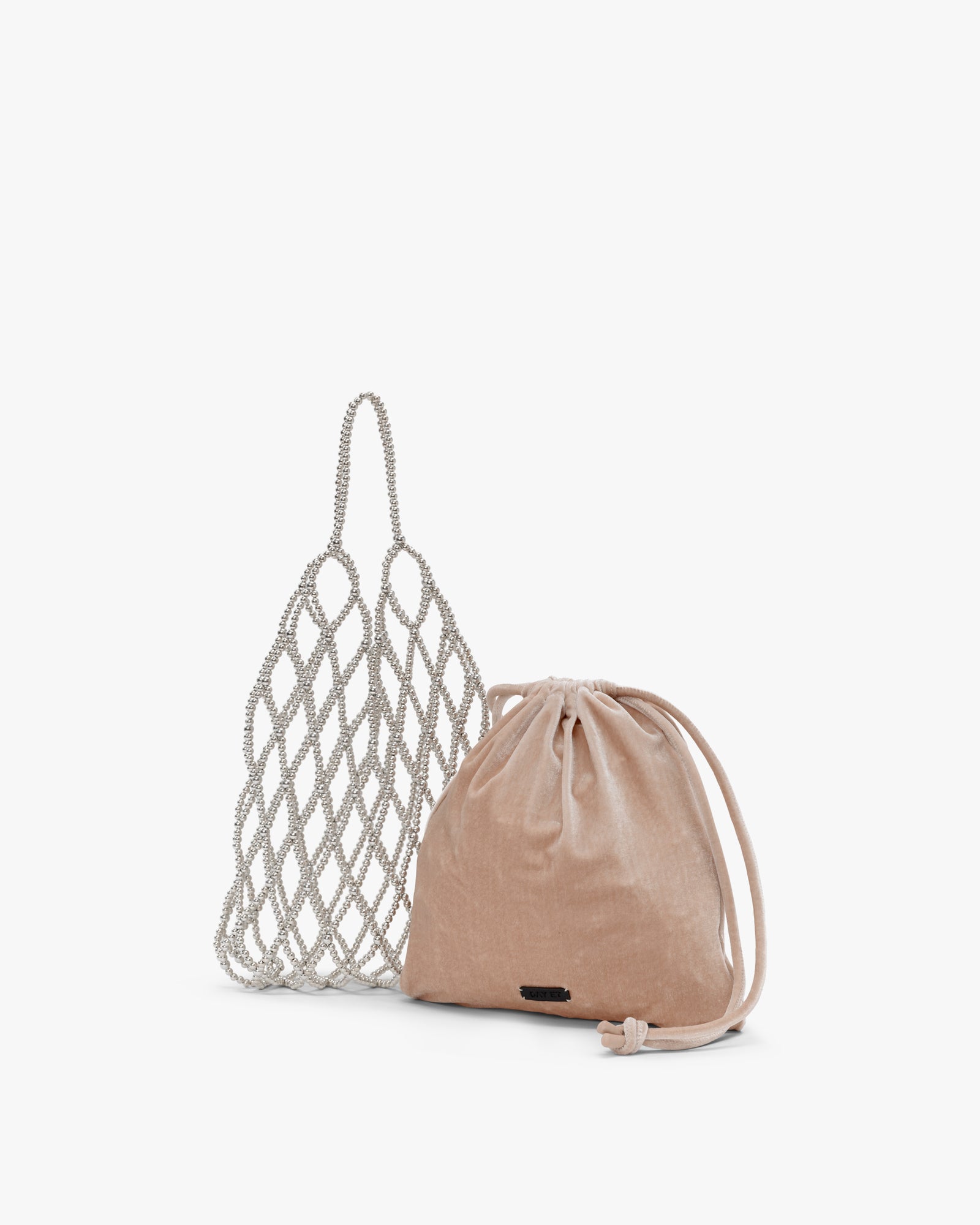 En let og dekorativ taske, der skiller sig ud med sit netdesign lavet af perler i metallook. Den indvendige pose i blød velour lukkes med snøre og giver plads til de vigtigste ting. Tasken kan bæres både i hånden og over skulderen – perfekt til festlige lejligheder eller som blikfang i hverdagen.