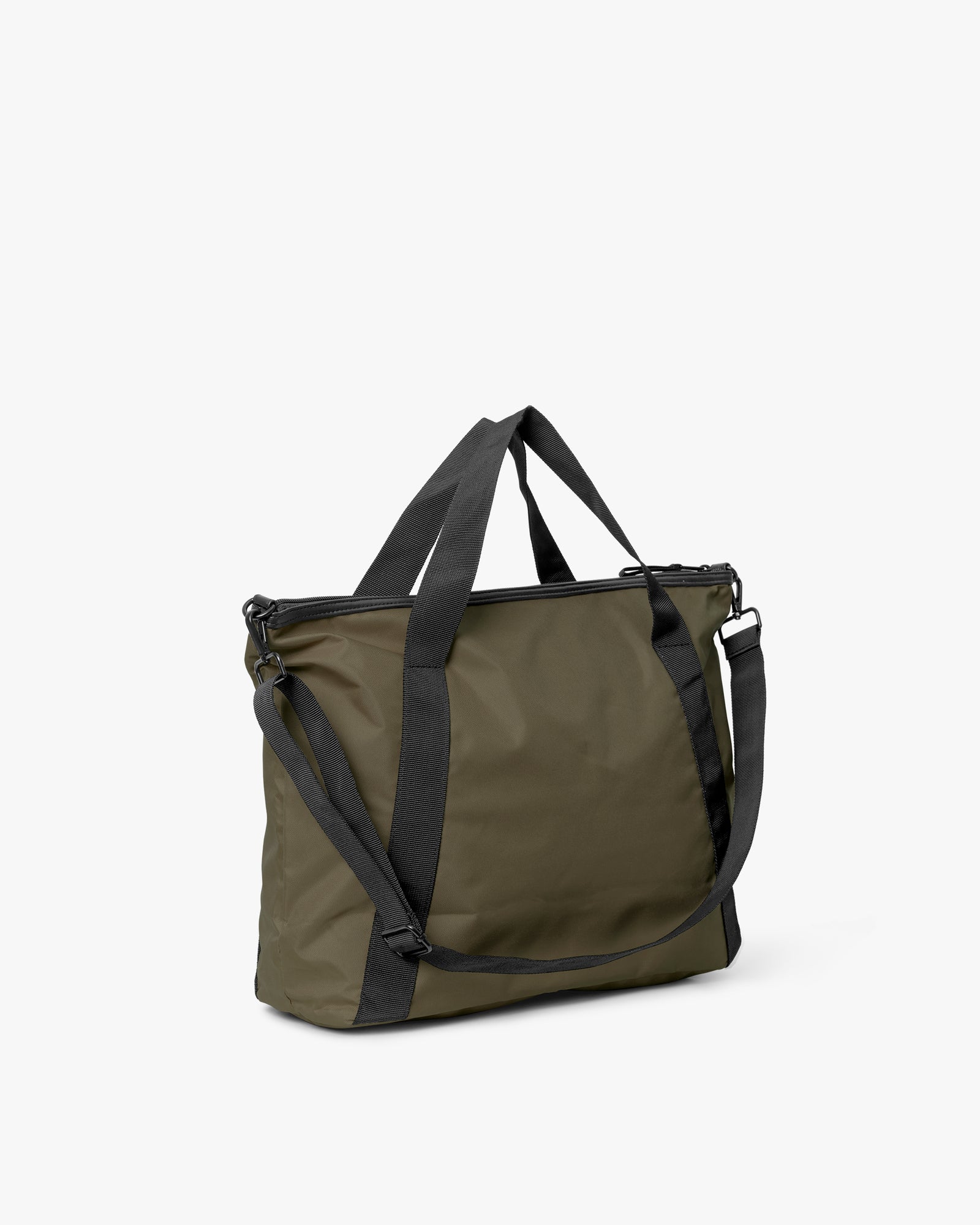Denne funktionelle taske er perfekt til en dag på farten, og dens ydre stof og inderfor er lavet af 100% certificeret genanvendt materiale. Tasken lukkes med en lynlås, og i hovedrummet er der en indvendig lynlås lomme. Udover de to kortere håndtag har tasken også en aftagelig og justerbar strop, så den både kan bæres over skulderen og som crossbody.