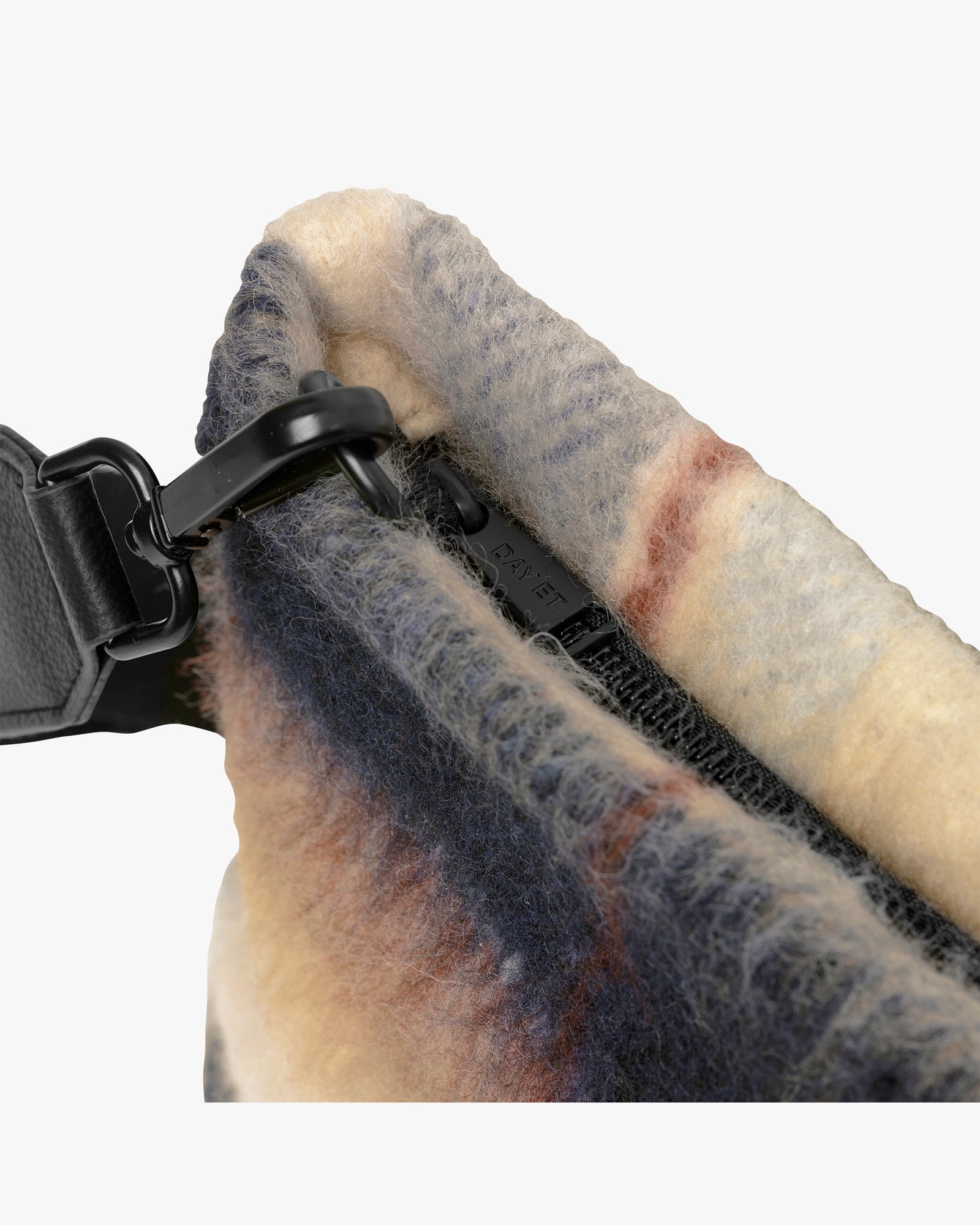 En alsidig pouch i blødt uldent materiale med et unikt ternet mønster, der både kan bruges som clutch eller crossbody. Den har en sænket lynlåslukning og en åben inderlomme, og den justerbare, aftagelige strop gør det nemt at tilpasse den til dit behov. Et funktionelt og stilrent valg til både hverdagsbrug og ud-af-døren øjeblikke.
