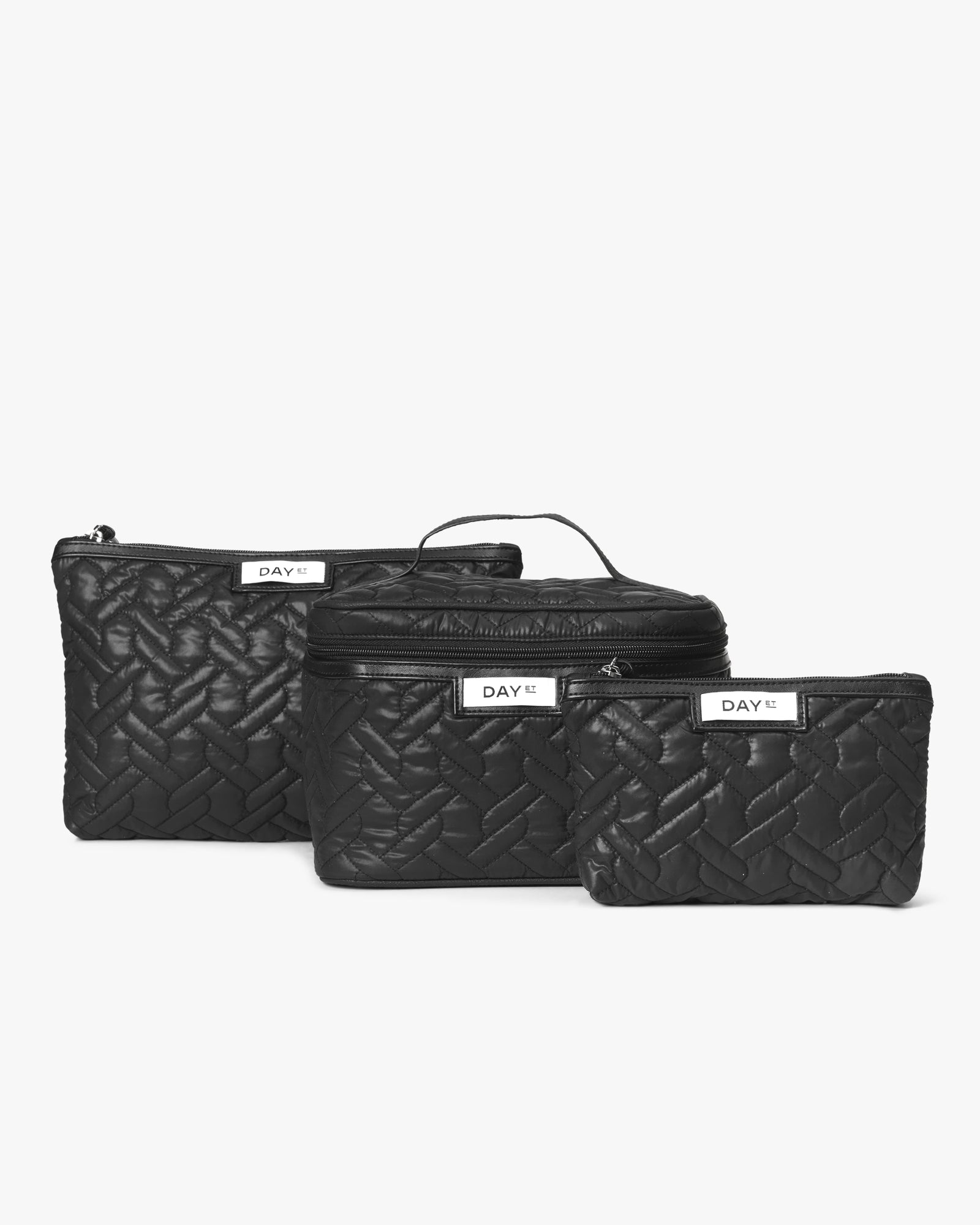 This set is perfect for storing your toiletries, beauty products and make-up. The outer fabric and inner lining is made of 100% certified recycled material. The set consist of a make-up bag, a bigger toiletry bag and a smaller make-up pouch. They are closed with a zipper, and they are designed in a striped material.